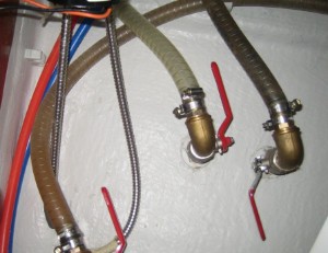 Si la toma o descarga está por debajo de la linea de flotación, es obligado la instalación de una válvula que permita su cierre en caso de avería y si el conducto es mayor de 25 mm, es obligatoria la instalación de dos abrazaderas que unan el tubo con la válvula.